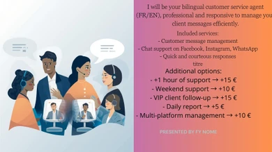 Je vais gérer vos messages clients en français et en anglais. Je vais répondre rapidement et profess