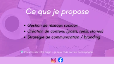 Je vais être votre Community Manager polyvalente pour gérer vos comptes Instagram et Facebook