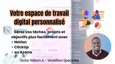 Je vais créer votre système d'organisation clair et efficace avec Notion, Click up ou Asana, sur-mesure