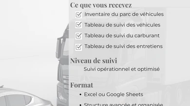 Je vais optimiser la gestion de votre parc de véhicules avec des tableaux de suivi complets et opérationnels