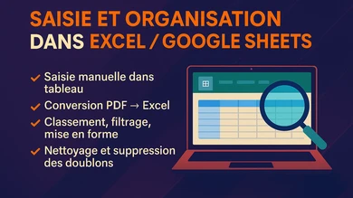 Je vais saisir vos données sur Excel ou Google Sheet saisie de données