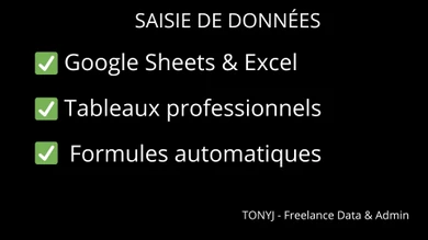 Je vais saisir pour vous toutes vos données sur Excel ou Google Sheets, avec soin et exactitude