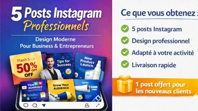Je vais créer 5 posts Instagram professionnels pour votre business