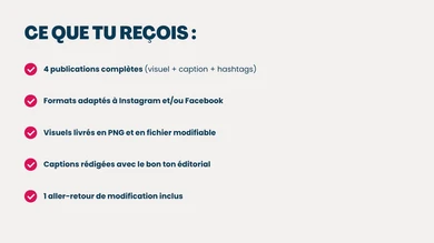 Je vais créer tes publications Instagram prêtes à poster : visuels, captions et hashtags