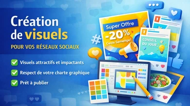 Je vais créer des visuels percutants et optimisés pour vos publications sur les réseaux sociaux et campagnes