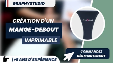 Je vais créer le visuel professionnel de votre mange-debout personnalisé prêt à imprimer