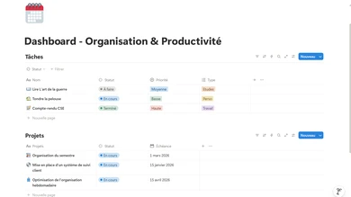 Je vais créer un dashboard Notion simple pour organiser vos tâches et projets