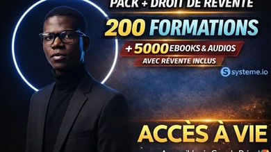 Je vais vous fournis un pack premium de 200 formations et plus de 5000 eBooks avec droit de revente