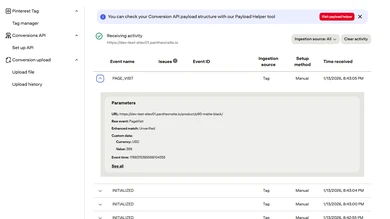 Je vais configuration optimisée du tag Pinterest et de l'API de conversion