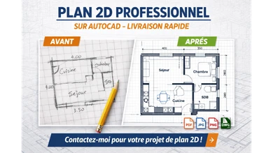 Je vais créer votre plan 2D précis et prêt à construire sur AutoCAD