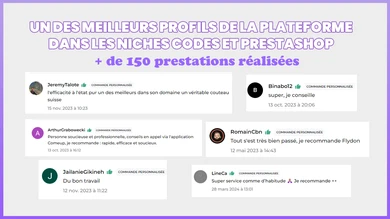 Vous utilisez PrestaShop ? Un freelance améliore votre site, vos fiches produits et vos fonctionnalités pour augmenter vos ventes. Idéal pour une boutique performante.