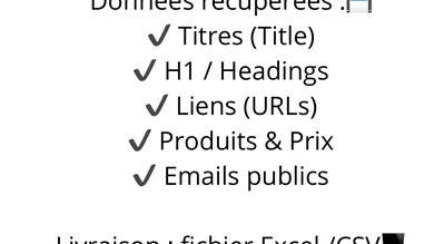 Je vais scraper des données de sites web et livrer un fichier csv excel