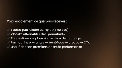 Je vais rédiger votre script publicitaire pour vos ads - TikTok, Meta, YouTube, UGC & E-commerce