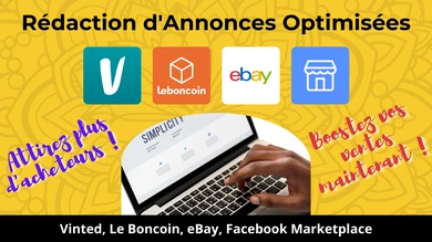 Je vais rédiger vos annonces optimisées pour Vinted, Le Bon Coin, eBay et Facebook Marketplace