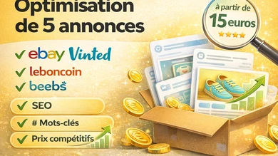 Je vais optimiser 5 de vos annonces eBay Vinted Leboncoin Beebs : titre, description SEO et prix conseillé