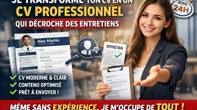 Je vais créer votre CV professionnel et votre lettre de motivation pour décrocher votre prochain entretien