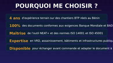Je vais je rédige un document eshs conforme aux exigences des bailleurs internationaux pour votre AO
