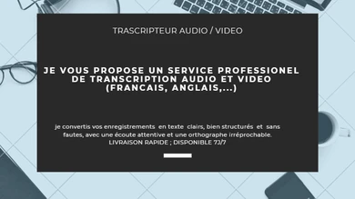 Je vais réaliser la transcription de vos fichiers Audio, Vidéo, Podcast, Interview, Réunion, Conférence