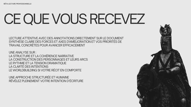 Je vais effectuer une bêta-lecture de votre manuscrit et vous apporter des conseils d'écriture