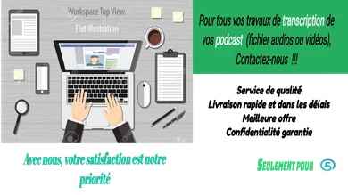 Je vais réaliser la transcription de votre podcast (fichier audio/vidéos) de 15 min