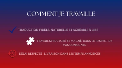 Je vais réaliser la traduction en anglais ou français de vos documents ou textes de 500 mots soit 2 pages