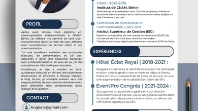Je vais adapter votre cv à une offre d'emploi profil junior ou débutant de 0 à 4 ans d'expérience