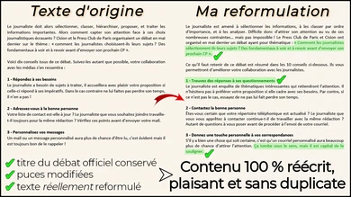 Je vais reformuler entièrement vos textes et articles