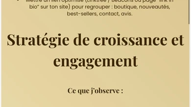 Je vais développer ta stratégie instagram pour clarifier votre message et attirer plus de clients
