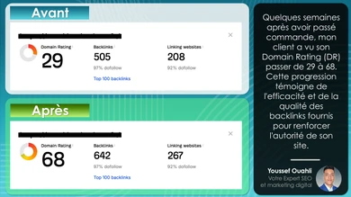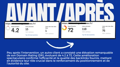 Je vais booster votre SEO avec des backlinks français DA50-70 PA10 15 et 1 super bonus