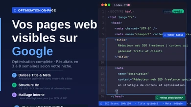Vous cherchez à améliorer votre position dans Google et gagner en visibilité ? Un freelance SEO peut renforcer votre stratégie grâce à la création de backlinks, à un audit SEO complet ou à une optimisation poussée de vos mots-clés. Augmentez votre trafic qualifié et améliorez durablement votre présence en ligne.