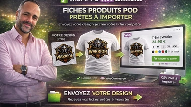 Je vais transformer vos designs en fiches produits POD prêtes à vendre, Shopify ou WooCommerce