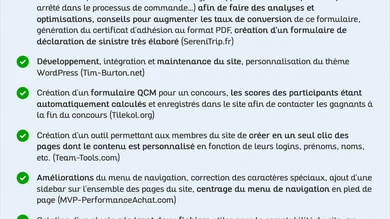 Vous rencontrez des problèmes techniques ? Un freelance assure la correction de bugs, les optimisations et sécurité ou l’analyse et reporting pour stabiliser votre solution. Profitez d’un site fonctionnel et sécurisé au quotidien.
