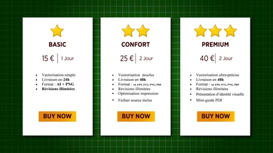 Un logo vectorisé garantit une qualité parfaite, quel que soit le format ou le support. Un freelance spécialisé transforme votre logo pour éviter toute pixelisation, notamment sur vos cartes de visite ou vos flyers et affiches. Idéal pour une utilisation professionnelle, print comme digitale.