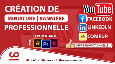 Je vais créer votre miniature ou bannière YouTube, Facebook, LinkedIn percutante