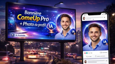 Je vais créer une bannière ComeUp professionnelle optimisée pour la visibilité et les clics