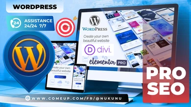 Je vais créerai un site WordPress performant et optimisé pour le référencement avec Divi ou Elementor Pro