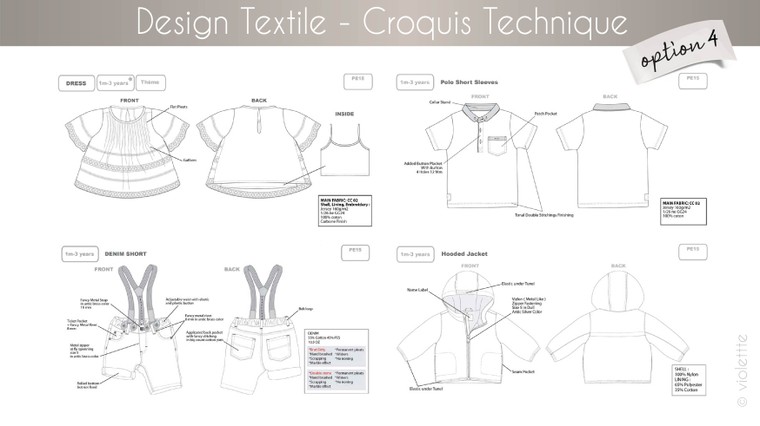 Ajout des matières, couleurs, intégration des animations (print, broderie, allover... )