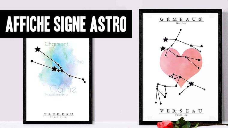 Je vous propose pour 17,54 $US une idée de cadeau originale, personnalisé et design à l'occasion d'un anniversaire, de la Saint valentin... Idéal pour la décoration de la chambre au dessus du lit : affichez côte à côte vos deux signes astrologiques et les plus belles qualités propres à chacun... ou bien combinez vos signes du zodiaque sur une seule et même affiche au look tendance et raffiné !