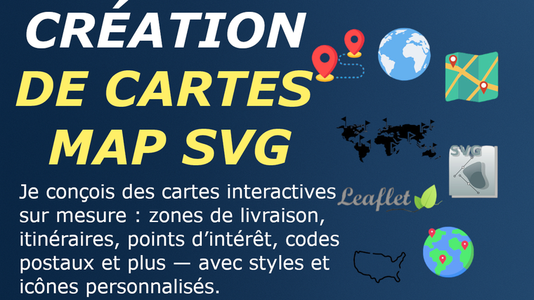 **Pour 199,66 $US : Affichage dynamique de données sur une carte svg/leaflet, jusqu'a 50 zones (régions/département)
