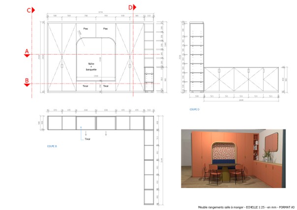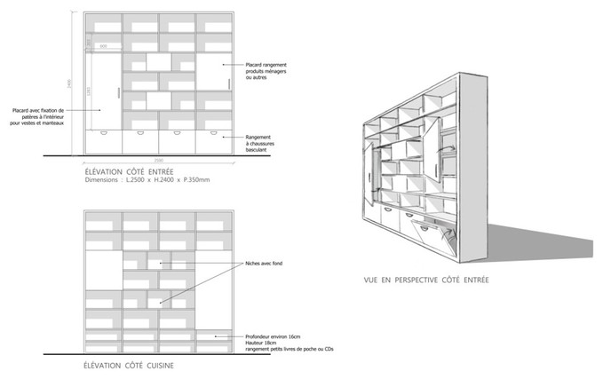 Pour la réalisation de cet agencement sur-mesure, si elle est trop complexe pour vous en occuper vous-même, je vous conseille de faire appel à une entreprise locale, un menuisier qui pourra sûrement répondre facilement à votre attente grâce à l'étude effectuée.