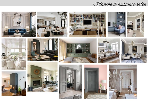 Avec la commande basique, je vous propose une planche conceptuelle. C'est-à-dire une recherche de 15 photos d'inspiration, d'ambiance, soigneusement sélectionnées, pour répondre à votre besoin spécifique, et pour un type d'espace en particulier : cuisine, séjour, salle de bains, bureau, entrée...