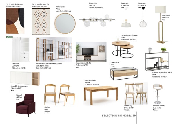 - recherche de références mobilier chez les enseignes courantes (shopping liste).