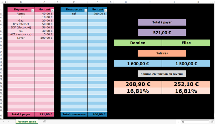 Je vais créer un fichier Excel pour répartir les dépenses d'un loyer en fonction du payement