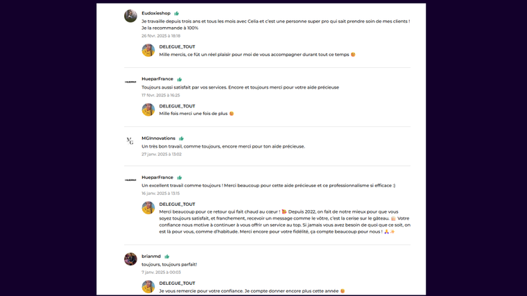 - Une expérience avec une trentaine de boutiques et plus de 200 avis positifs sur ce service.