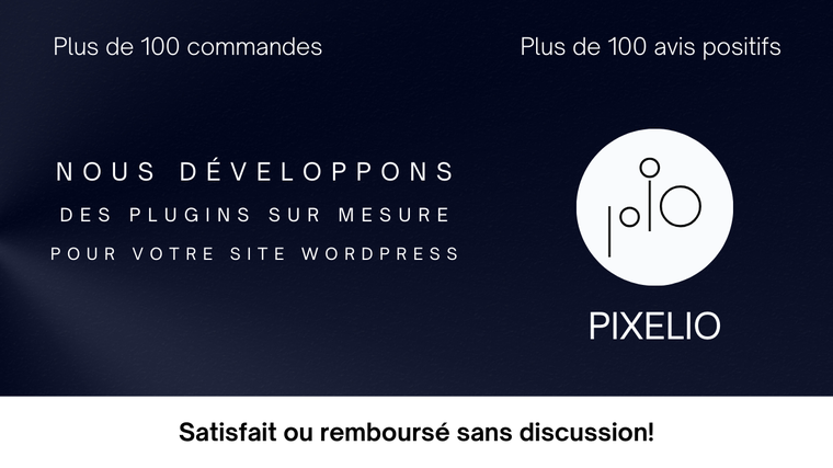 Pixelio est votre partenaire de confiance & expert pour le développement de plugins WordPress de qualité supérieure. Notre promesse : Garantie à vie sans bug. We develop your brand, you enjoy.
