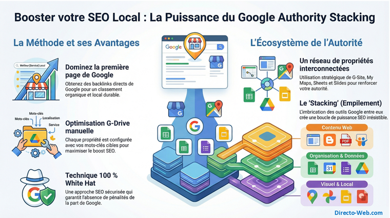 Le Google Authority Stacking est l'une des stratégies les plus efficaces et les plus sûres pour propulser votre entreprise au sommet des résultats de recherche locale et organique.