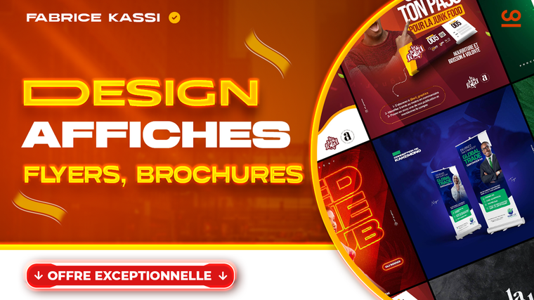 Hello . Je suis Fabrice KASSI, **graphiste designer** talentueux et expérimenté. Je me sers des dernières tendances en matière de design et je mets mes talents à votre service pour créer des flyers et des affiches professionnels et de qualité exceptionnelle.