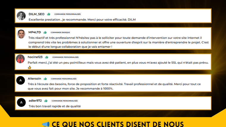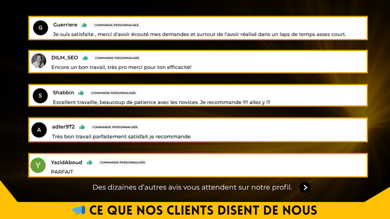 ~ NB : L'ensemble de ces commentaires a été donné par mes clients, est vérifiable sur mon profil et a été validé par la plateforme.~