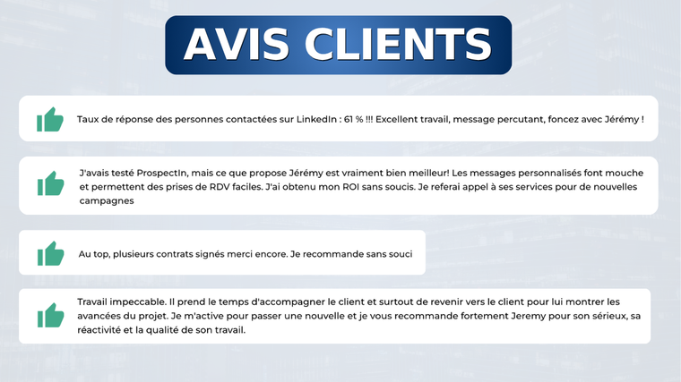Proposé par JeremIn •HelpIn : Agence de Prospection Commerciale • Prospection Linkedin • Publicité Linkedin Professionnel Ventes au total 244
