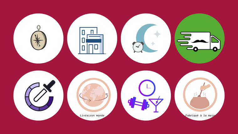 L'offre de base : 5 pictogrammes format .svg, .png (11,74 $US - 5 jours - 2 retouches)
